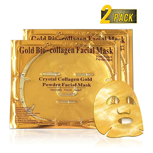 Aliver 2 Pack Maschera per il viso del collagene d'oro - anti invecchiamento, rughe, idratante, macchie, rassodanti, tonificanti, cerchi scuri, pelle liscia, ascensore naturale