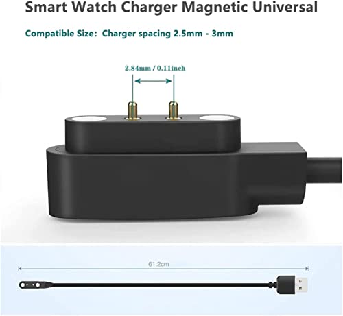 Aliwisdom - Universale Caricatore per Smartwatch, Accessori Smartwatches caricabatterie 2 Pin cavo di ricarica per Smart watch, cavo di ricarica USB magnetico, distanza tra i pin 2,5 mm-3 mm
