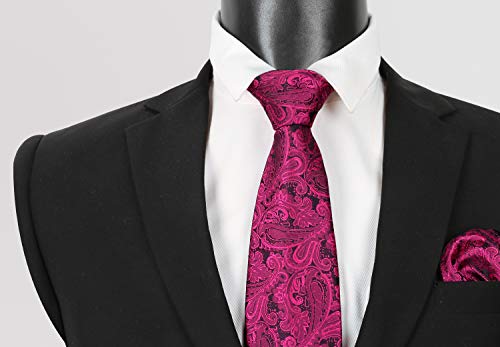 Alizeal Cravatta Floreale Paisley fatta a mano con il set da regalo quadrato tascabile (59" Lunghezza x 3,5" Larghezza, rosa caldo)
