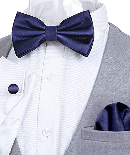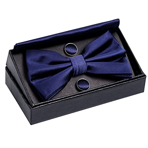 Alizeal Mens Tuxedo Tuxedo Bow Tie, Hanky e Gemelli Set (Navy)(Taglia: una taglia)