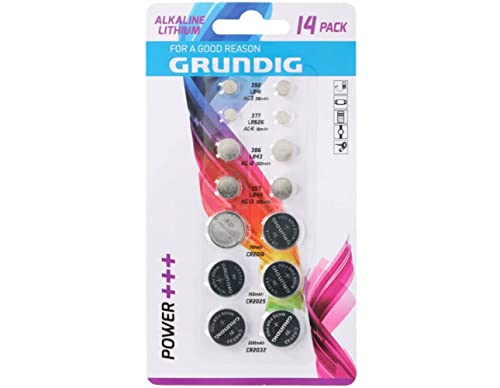 Alkaline - Batterie a bottone per orologio al litio Power Grundig, confezione da 14