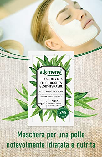 Alkmene - Maschera idratante per viso con aloe vera biologica per pelli da normali a secche, confezione da 4 (4 x 12 g)