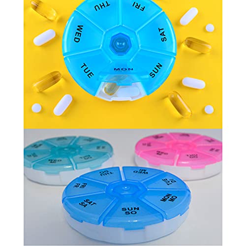 Pratico portapillole, portapillole, portapillole, portapillole, contenitore per medicinali, contenitore rotondo per 7 giorni della settimana. Organizer per pillole con suddivisione chiara. Formato tascabile, maneggevole