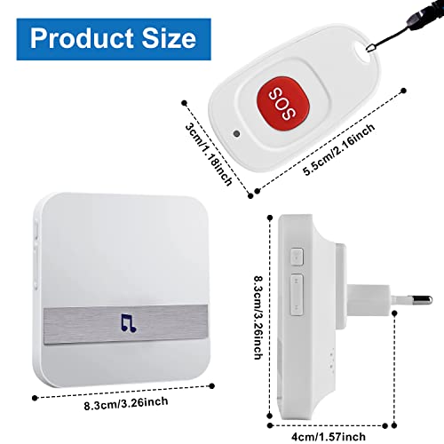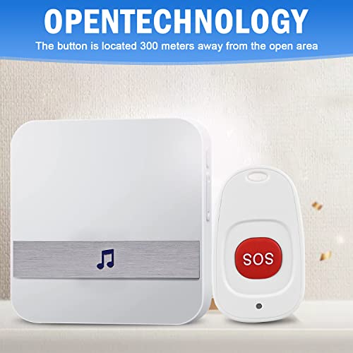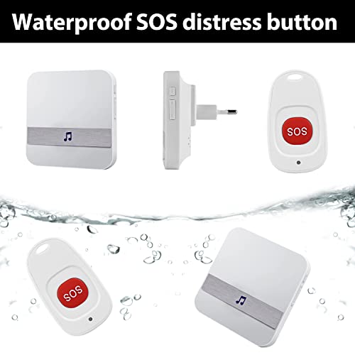 Allarme per Anziani - Wireless Pulsante Chiamata Emergenza per Anziani Allarme Sicurezza Cercapersone Sistema di Assistenza per Anziani Impermeabile - 1 Ricevitori + 1 SOS trasmettitore