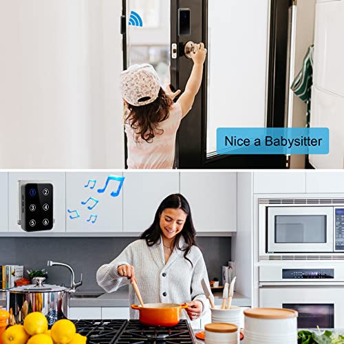 【ID chiamante sensore allarme porta e facile espansione】 Il ricevitore ha una funzione di display digitale e il sistema può essere espanso per ospitare più ricevitori e più sensori porta/campanelli/cercapersone. Un ricevitore può collegare fino a sei sensori porta/campanelli/cercapersone e il display digitale del ricevitore consente di vedere meglio dove è entrato qualcuno.