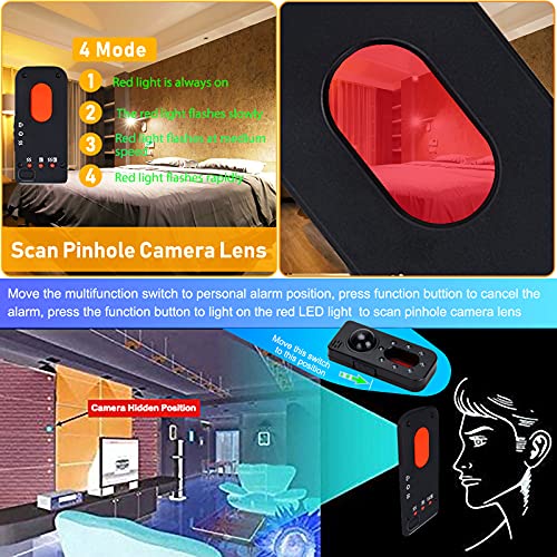 Scansione dell'obiettivo della fotocamera pinhole: questo cercatore di telecamere a filo ha un mirino a infrarossi e 8 luci LED rosse. è possibile premere il pulsante rettangolare per regolare la velocità del flash delle luci a led rosse o farle rimanere a luce rossa fissa, attraverso la finestra di osservazione del filtro a infrarossi del dispositivo, è possibile trovare i punti riflettenti dell'obiettivo della fotocamera a foro stenopeico nascosto.