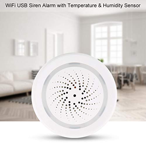 Questo è un allarme sirena WiFi USB con sensore di temperatura e umidità.