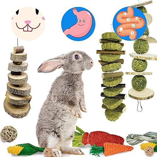 Allazone 15 Pz Coniglio Giocattoli Masticare, Giocattolo per Conigli, Torta All'erba Luffa, Giocattolo di Carota per Animali Domestici Naturali, Usato per Coniglio