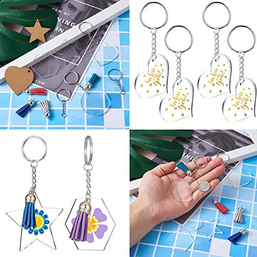 Portachiavi in acrilico set DIY: 40 pz 8 Formatrasparenti in acrilico, 20 pz portachiavi in 2 stili, 20 pz catena a sfera, 20 pz mini fiocco, 6 pz adesivo a motivo casuale. Ottimo per progetti in vinile, bricolage e portachiavi.