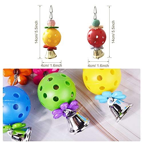 Giocattoli dai colori vivaci: altalena da 3 pz che mastica posatoi appesi per pappagalli, 2 pz campane pendenti e 2 pz palline per cattura piede. Gli uccelli domestici amano i colori vivaci, i giocattoli a gabbia battente sono colorati e belli, la campana e il giocattolo da masticare attireranno i tuoi uccelli per giocare e masticare.