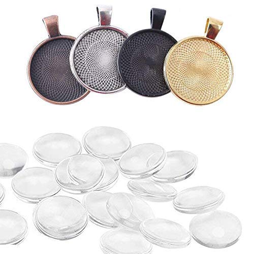 Allazone 24 Pz Rotondo Ciondolo Vassoi Pendenti Metallo DIY Craft Gioielli, Vetro Coppette in Vetro Cabochon Cameo And 15 Pz Ciondoli er Foto Gioielli Ciondolo Vetro Artigianali Fai da Te