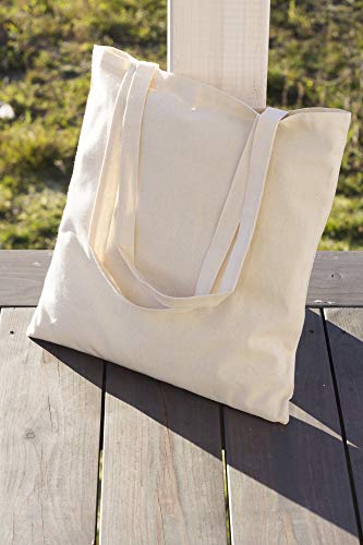 Borsa in cotone: borsa in 100% cotone biologico, ecru naturale. Dimensioni: 38 x 42 cm. La borsa ha due manici lunghi 70 cm.