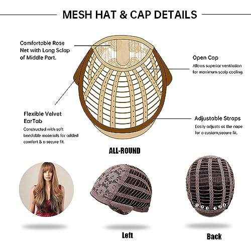 【Regolabile & Traspirante Parrucca Cap】: Questa lunghezza ondulata Parrucca taglia media (21 "-22,5 "). Due cinghie elastiche nel cappuccio, e si può regolare le cinghie in base alla testa. Il cappuccio traspirante della rete rosa ti fa sentire a tuo agio quando lo indossi. Facile da installare, facile da togliere, risparmiando più tempo.