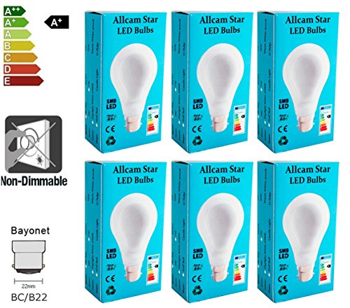 Allcam 7w baionetta b22 lampadine a LED gls, 70w equivalente 6500k Cool White Daylight. Risparmio energetico - Confezione da 6