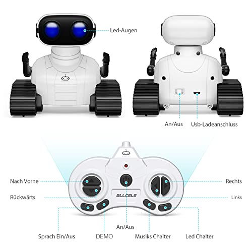 ALLCELE Giocattolo Bambini Robot Telecomandato Ricaricabile, Con occhi a LED Musica e Suoni Interessanti, per Bambini dai 3 4 5 6 7 8 anni Regalo per Ragazzi e Giocattolo Ragazze Bianco