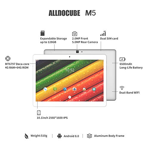 ALLDOCUBE M5 Tablet 4G Display da 10.1 (64 GB, 4 GB di RAM, Android 8.0, Bluetooth4.2,4G / Wifi Dual-SIM )