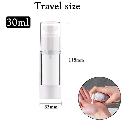 Alledomain 6 flaconi a pompa airless, ricaricabili, trasparenti, vuoti, da viaggio, per lozioni, fondotinta, essenze, lozioni (30 ml), Trasparente, bianco, 30 ml