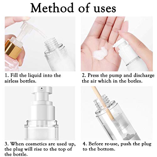 Multiuso: le nostre bottiglie con pompa sottovuoto sono perfette per riempire lozioni, fondotinta, sieri, creme, creme idratanti o prodotti cosmetici per la cura della pelle fai da te. 1 set include 6 bottiglie, si adatta alla maggior parte delle esigenze in viaggio o nella vita quotidiana.