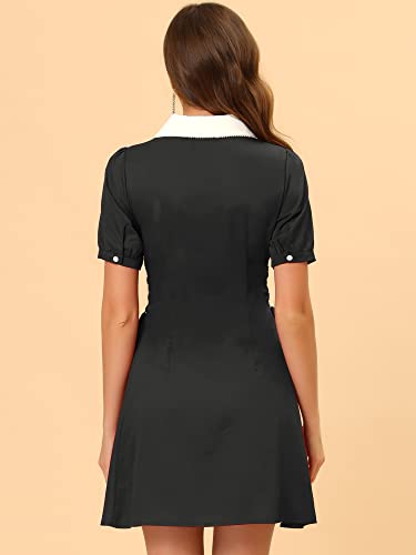 Allegra K Abito da donna vintage con colletto Peter Pan a contrasto con bottoni, Nero, 40