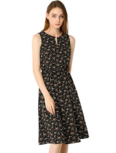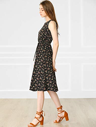 Allegra K Abito longuette senza maniche a trapezio con scollo a V stampato in vita, Nero, 44