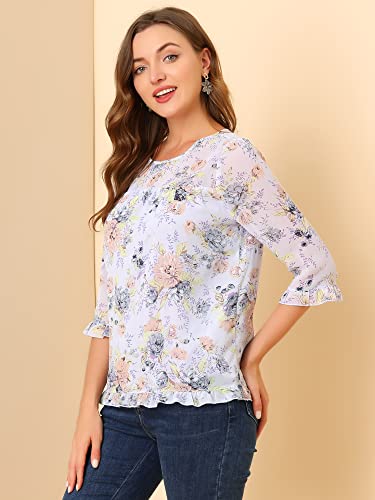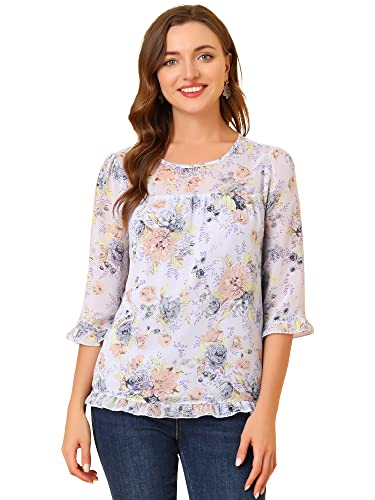 Allegra K Camicetta da donna in chiffon con maniche a 3/4 con volant casual, Viola, 40
