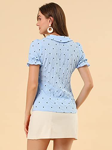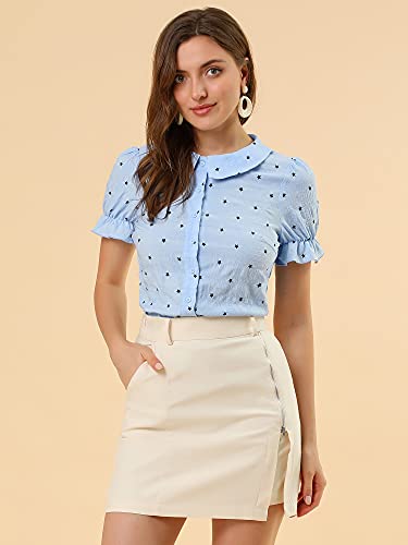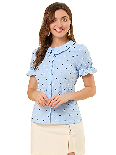 Allegra K Camicia da donna con colletto Peter Pan Top Camicetta con maniche a sbuffo a stelle abbottonata, Azzurro, 52