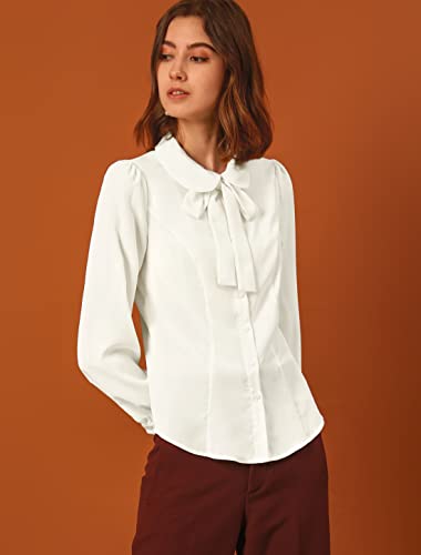 Allegra K Camicia da donna Peter Pan colletto a maniche lunghe a sbuffo camicetta in chiffon fiocco collo con bottoni camicia da lavoro, bianco, 40