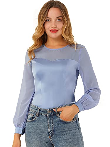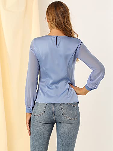 Allegra K Camicia elegante da donna in chiffon di raso con pannello rotondo a maniche lunghe, Blu, 40
