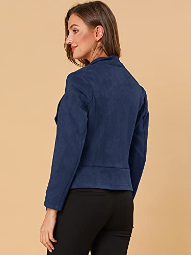 Allegra K Cardigan da donna in finta pelle scamosciata con risvolto anteriore aperto drappeggiato, Blu reale, 40