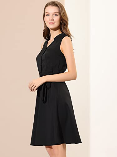 Allegra K Donna Abito Estivo con Bottoni Vestito Midi sul Davanti Senza Maniche con Scollo a V Nero XS