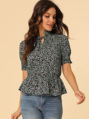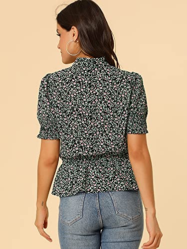 Allegra K Donna Camicetta Peplo Floreale Punto Smock Davanti Nero M