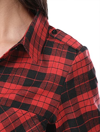 Allegra K Donna Camicia a Quadri Manica Lunga Bottone Spazzolata con Tasche a Patta con Risvolto Nero Rosso XS