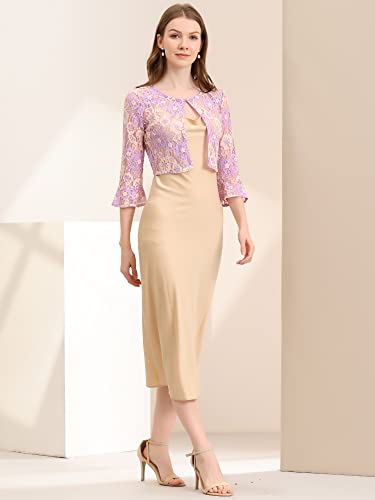 Allegra K Donna Cardigan Corto in Pizzo Floreale Trasparente con Maniche a Campana Bolero Coprispalle Floreale Ricamo Elegante per Festa Cerimonia Matrimonio Viola S