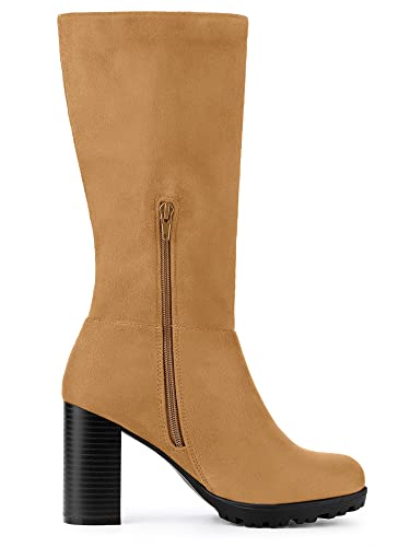 Allegra K Donna Mezzo Polpaccio Blocco Tacco Stivali Marrone 40