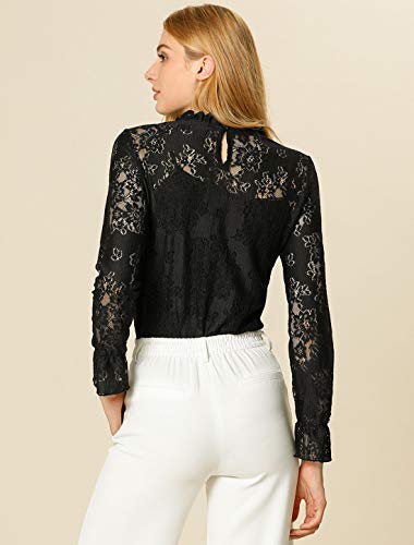 Allegra K Donna Pizzo Lace Floreale Pura Blocco Colore Blusa Nero M
