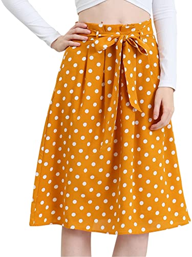 Allegra K Donna Pois Cintura Elastico Vita Vintage Dritto Medio Gonna Giallo a Pois S