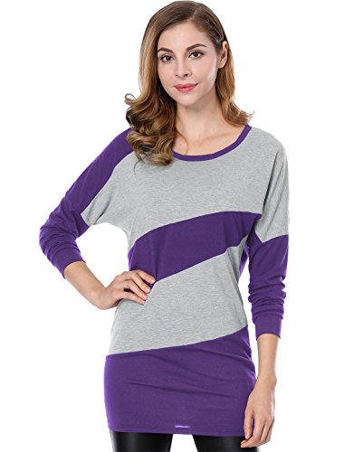 Allegra K Donna Viola Grigio Lente Strisciato Molla Tunica Top Magliette Xl