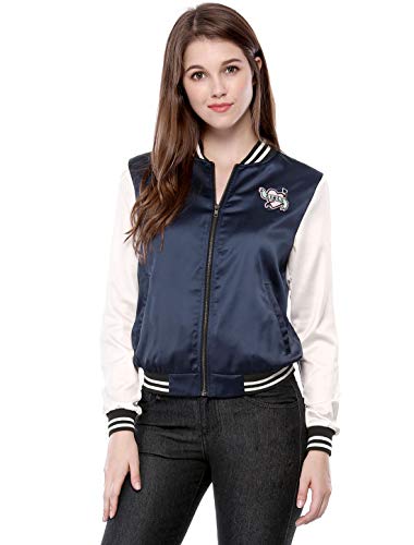 Allegra K Donne Baseball Varsity Giacchetto Cerniera Bomber Giacchetto