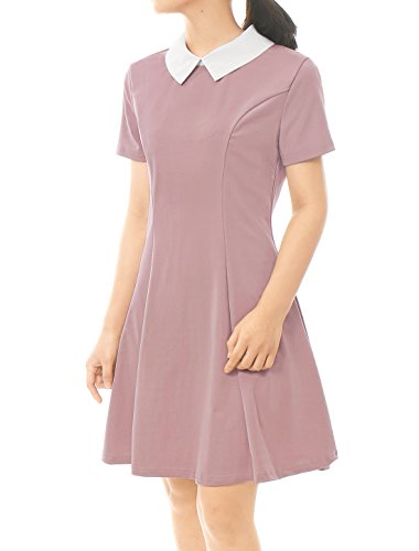 Allegra K Donne Contrasto Collare Bambola Maniche Corte sopra Ginocchio Abito Svasatura Vestiti Rosa XL