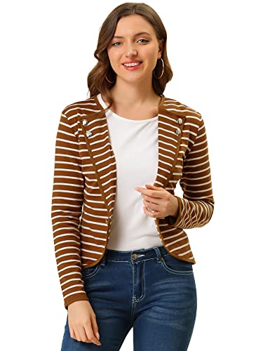 Allegra K Giacca da donna con risvolto dentellato con bottoni decorativi a righe leggere, Marrone, 12