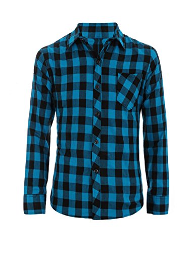 Allegra K Maniche Lunghe Uomini Bottone Stampa Fino Camicia in Flanella Blu S