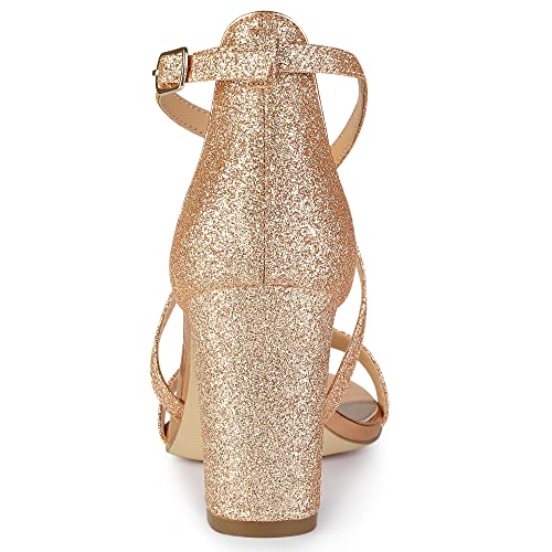 Allegra K - Sandali da donna con cinturino incrociato, con tacco a blocchi, Beige (Oro rosa), 41 EU