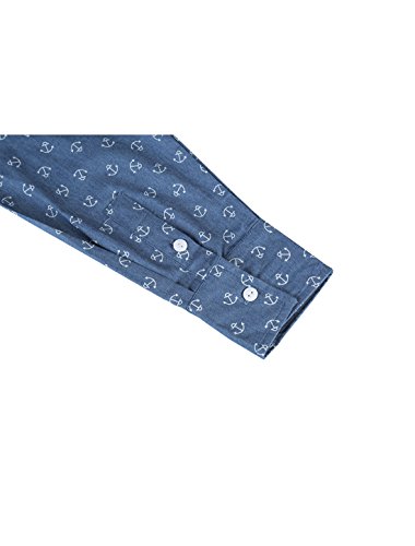 Allegra K Uomini Lungo Manicotto Tasca sul Petto Casual Ancora Stampare Magliette Blu Navy M