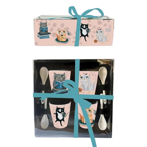 Allen Deco D197 Set 4 Tazze con Cucchiaini Crazy Cat