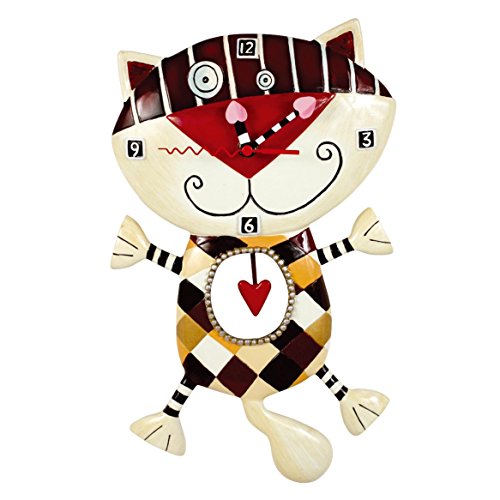 Allen Designs Orologio da Parete a Pendolo Gatto e Cuore