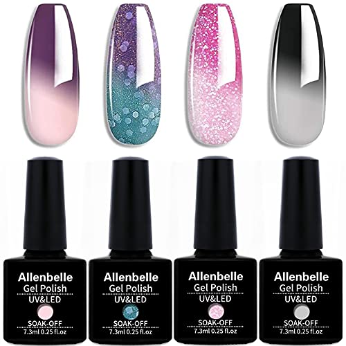 Allenbelle Smalto Semipermanente Camaleonte Nail Polish UV LED Gel Unghie (Kit di 4 pcs 7.3ML/pc) 0803