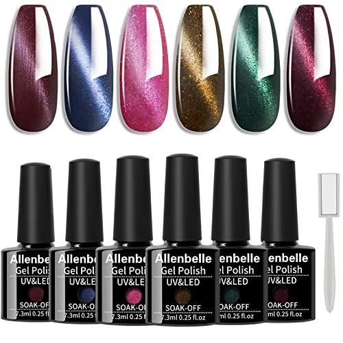 Allenbelle Smalto Semipermanente Magnetico Nail Polish UV LED Gel Unghie 7.3ml (Kit di 6 pcs 7.3ML/pc) 002