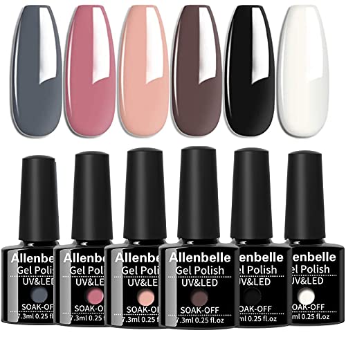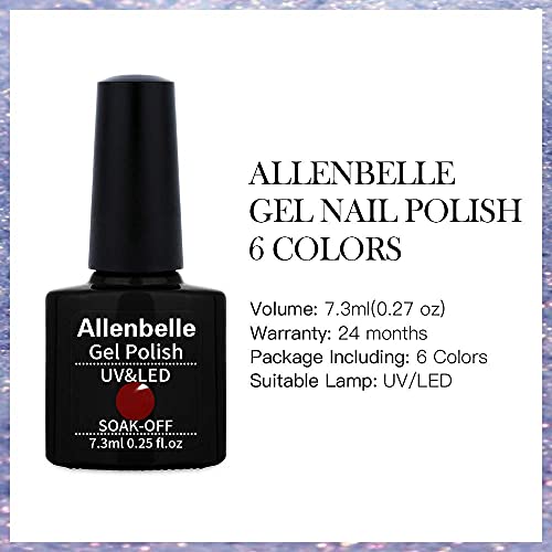 Allenbelle Smalto Semipermante Per Unghie Kit In Gel Uv Led Smalti Semipermanenti Per Unghie Nail Polish UV LED Gel Unghie(Kit di 6 pcs 7.3ML/pc) (013)