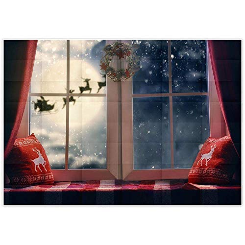 Allenjoy 210 x 150 cm Natale sfondo invernale fiocco di neve cuscino davanzale luna renna ghirlanda di Babbo Natale festa per bambini fotografia sfondo decorazione foto studio puntelli