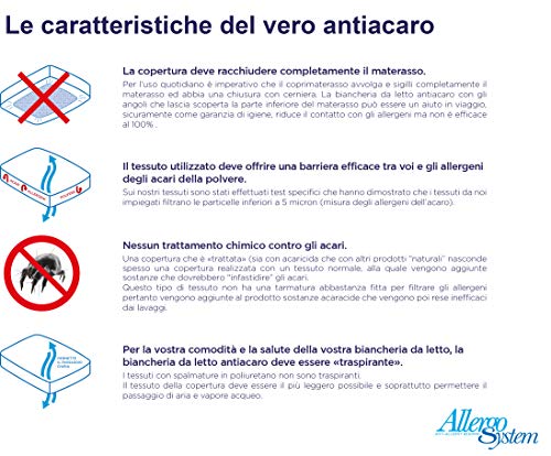 Allergosystem Set Antiacaro Composto da coprimaterasso con Cerniera per Letto Singolo, 90x200x20cm e copricuscino, 50x80cm, 100% Polipropilene
